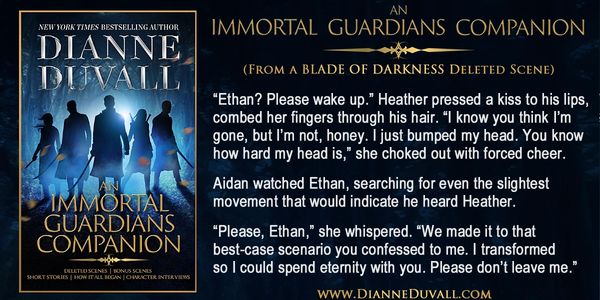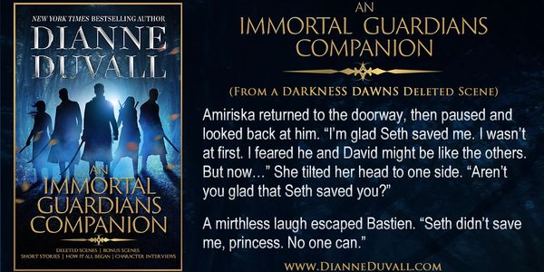 Your favorite character, Sheldon, here. If you’re an Immortal Guardians fan, I think you’re really going to enjoy this companion. Dianne has packed it with over a dozen deleted scenes that feature many of the characters you’ve come to know and love plus a bonus scene from Cliff’s Descent that you won’t want to miss.